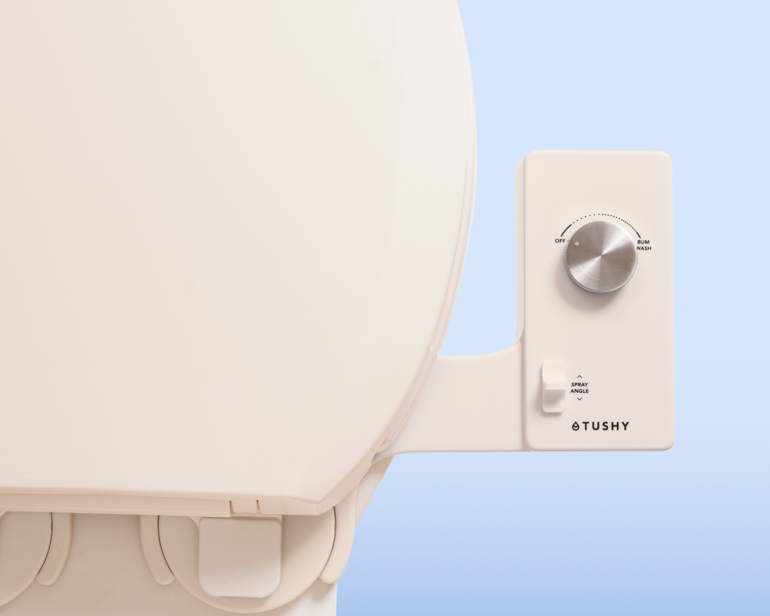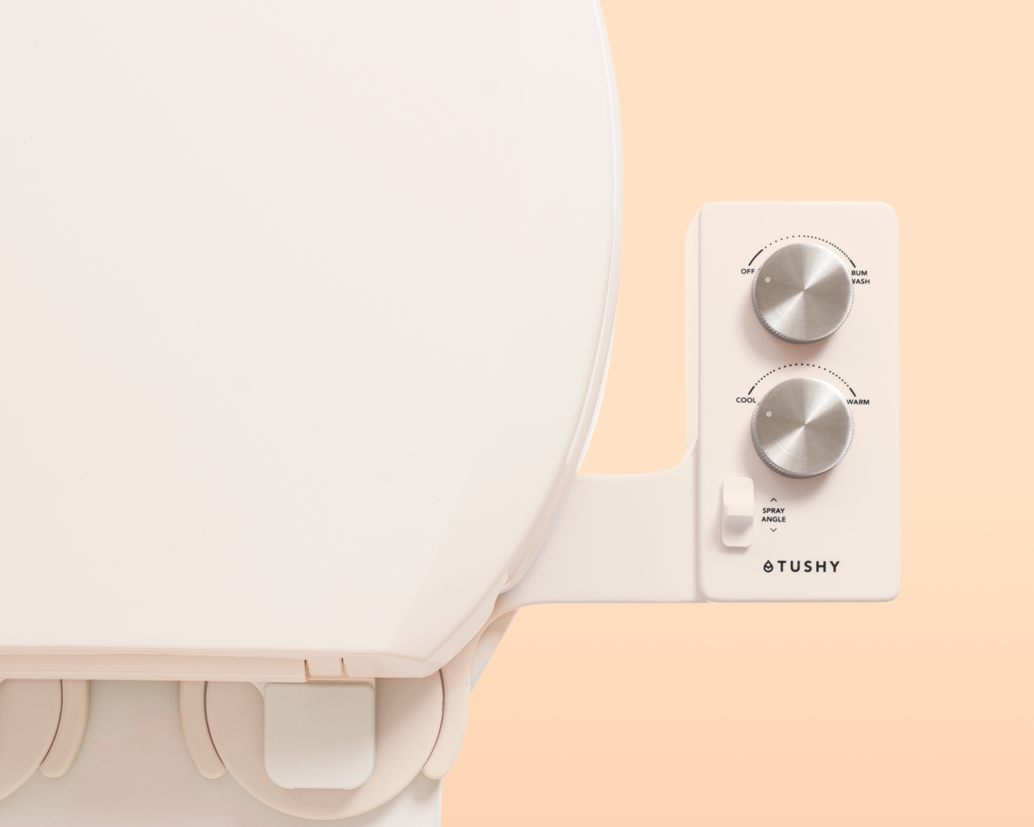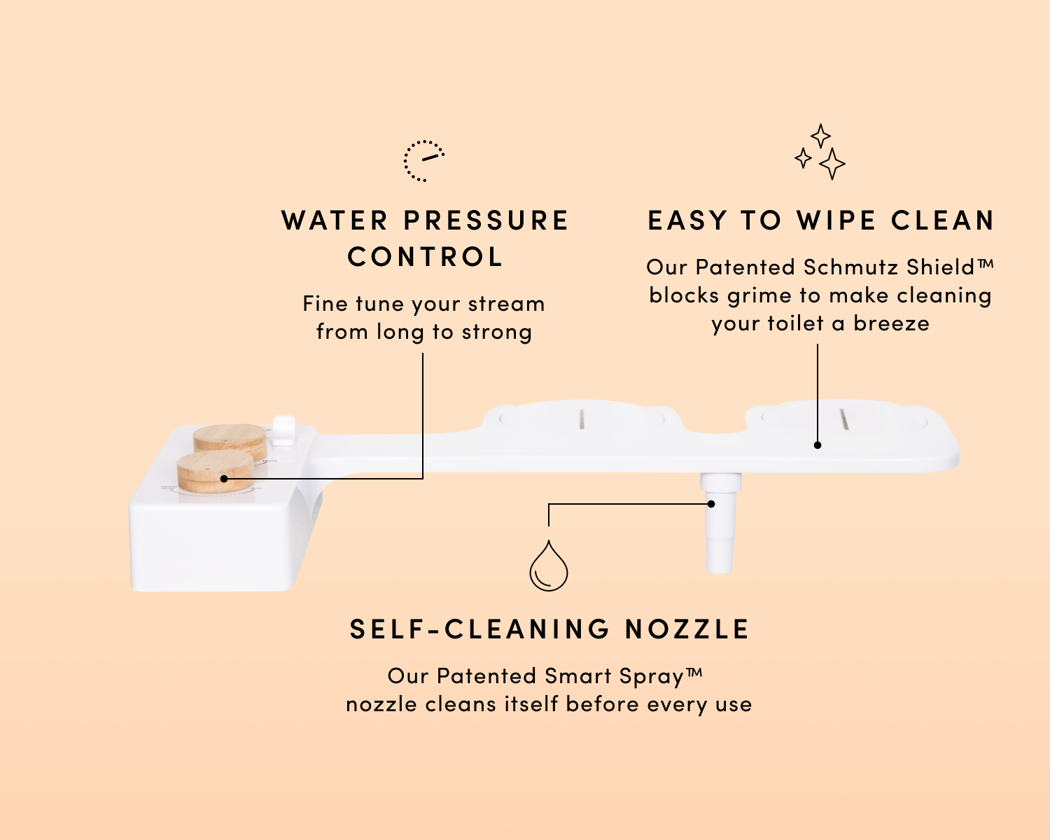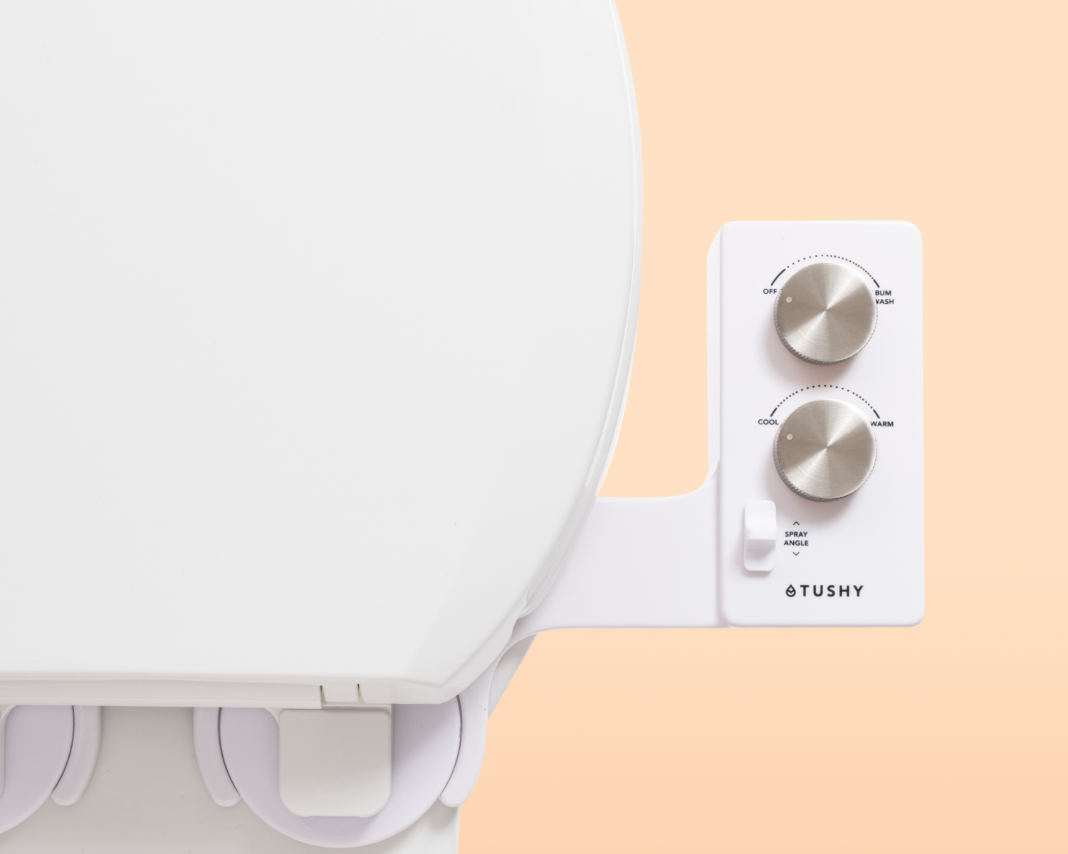 The TUSHY Spa is a warm water bidet attachment which means you can unscrew your toilet seat, pop the TUSHY on, connect to water, and you’re ready to drop the kids off at the pool. It doesn’t use any electricity, so it’s even more environmentally friendly and accessible for everyone.