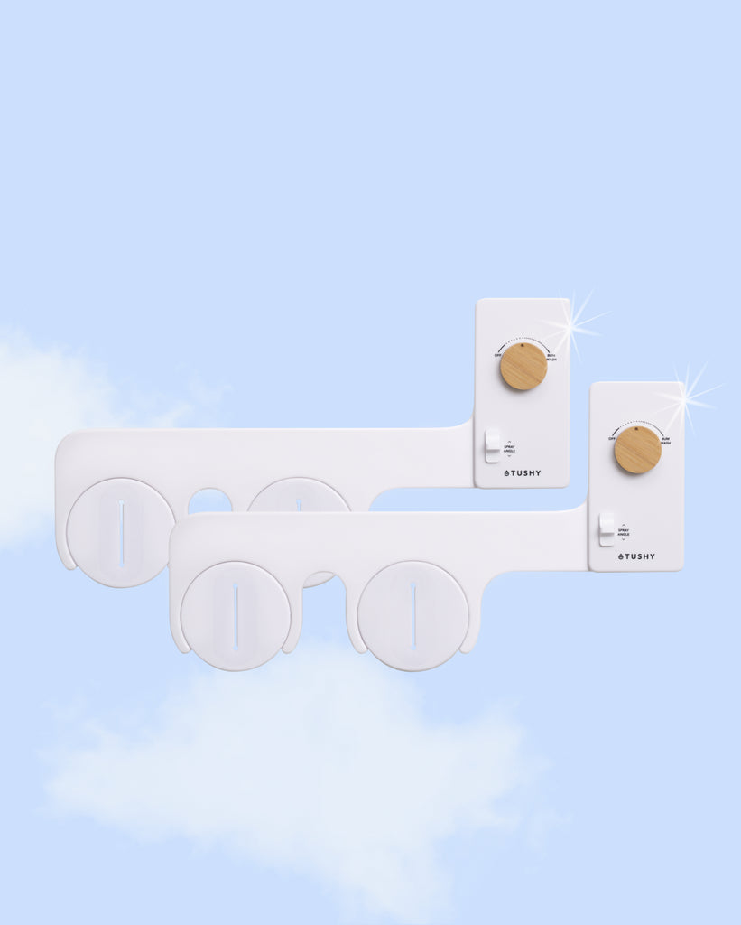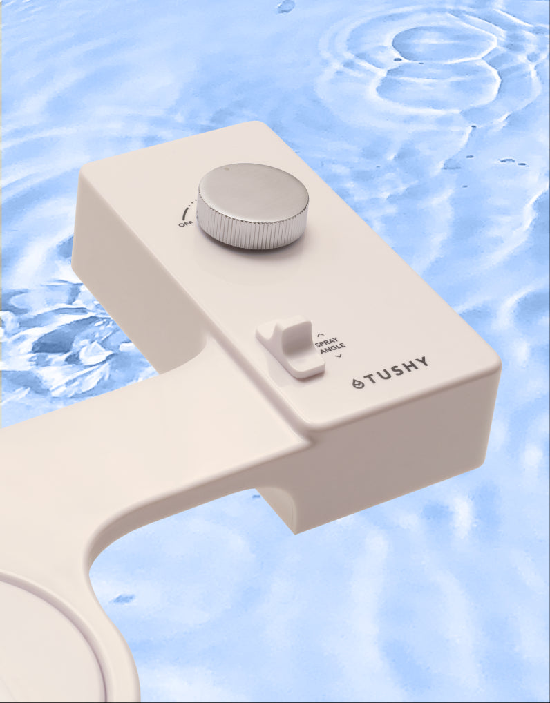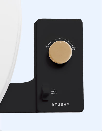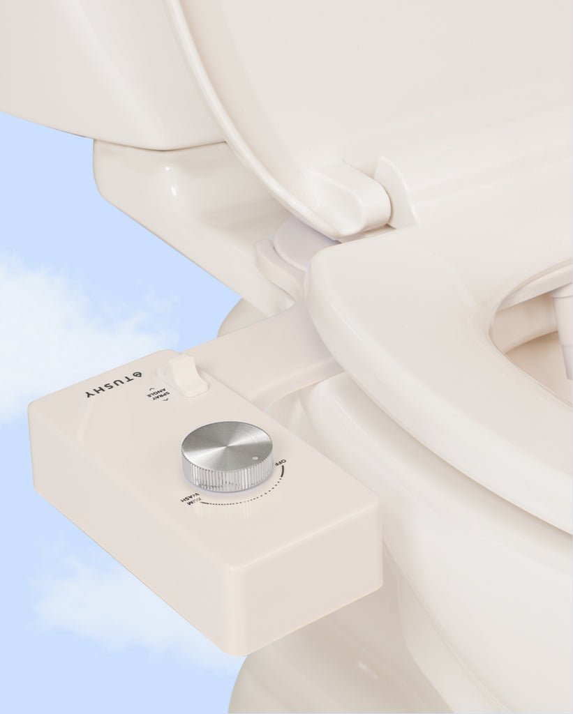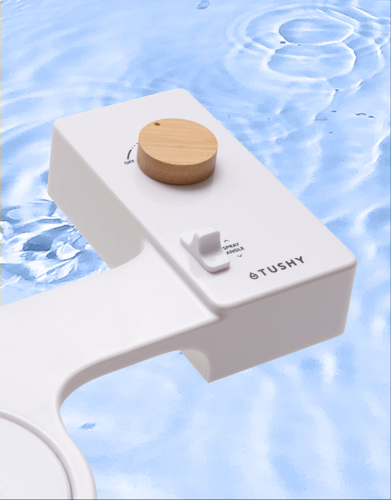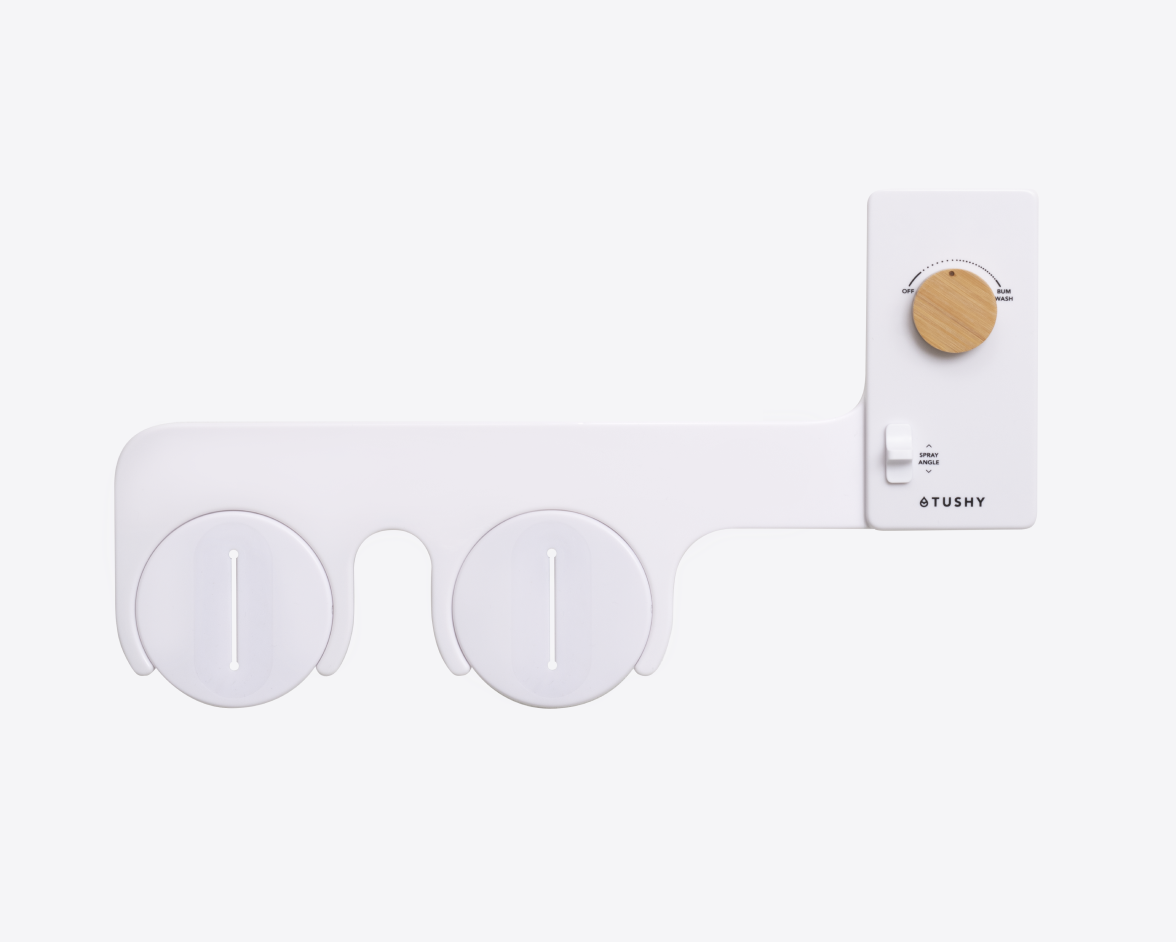 Sit, poop, spray, pat dry. Turn the dial on your TUSHY control panel to activate the bidet nozzle after you plop. Fresh, pressurized water will spray your b-hole clean. Let it flow for a few seconds before patting your booty dry with a few squares of bamboo TP!