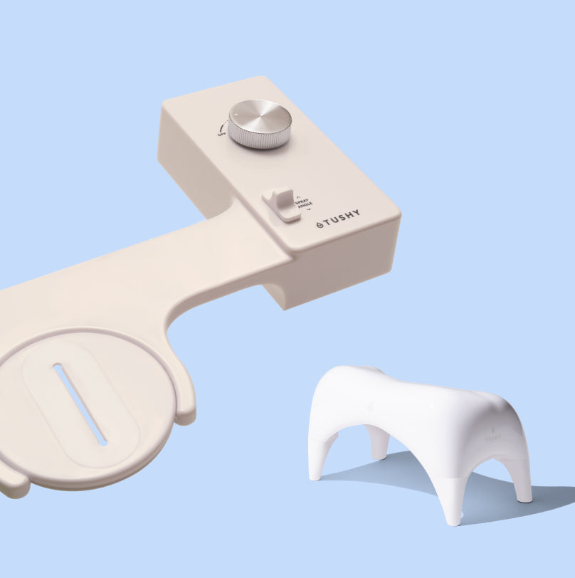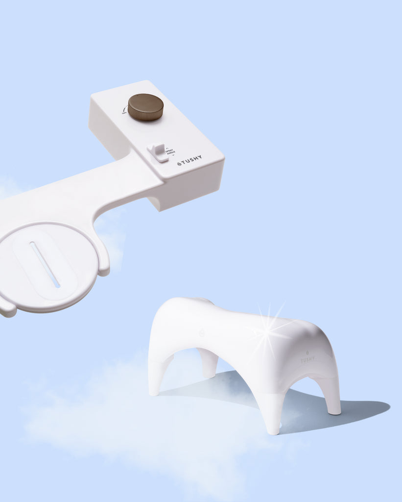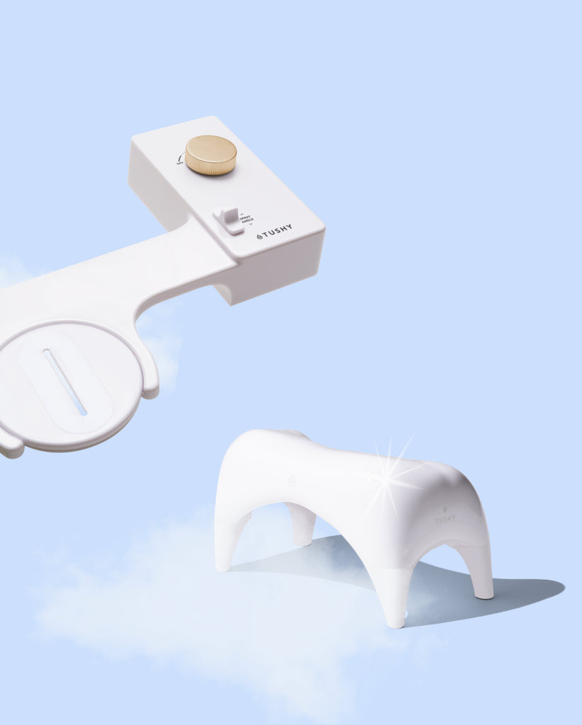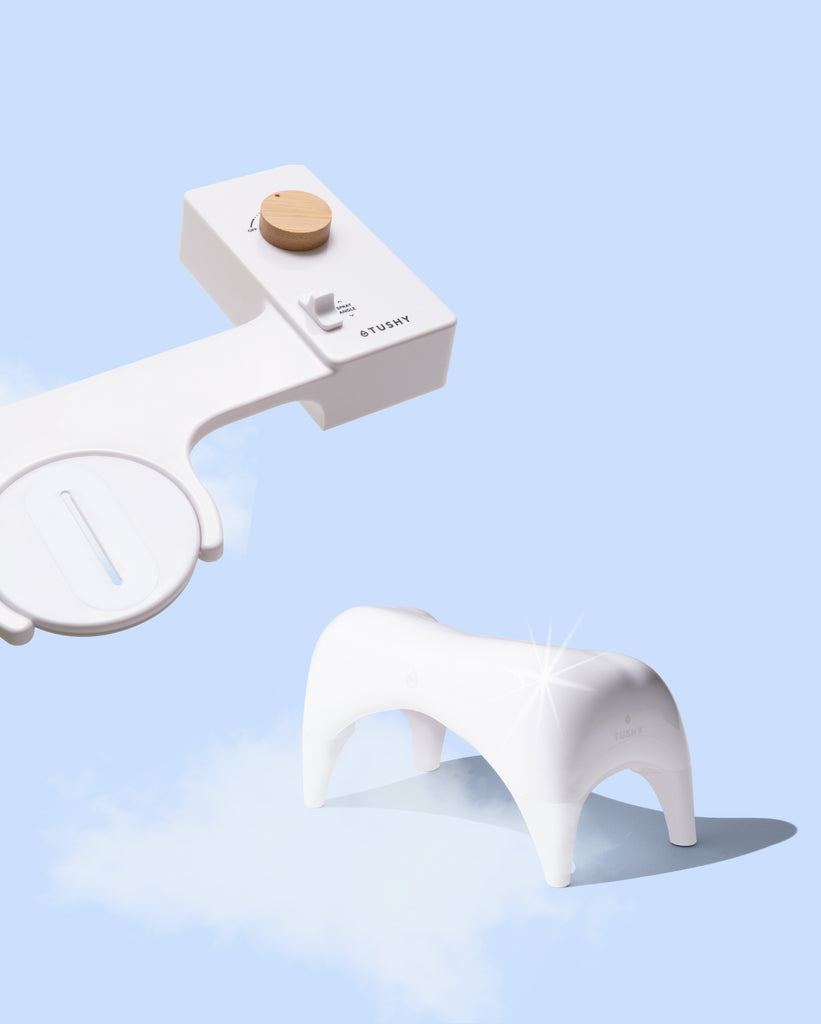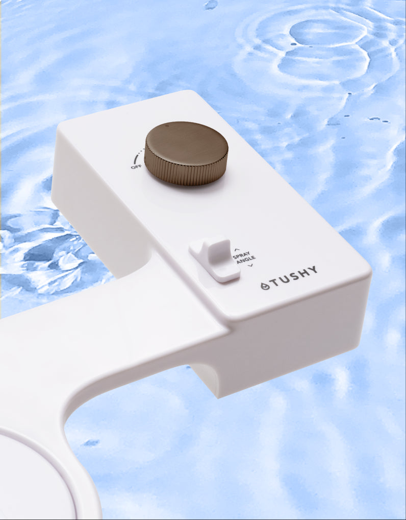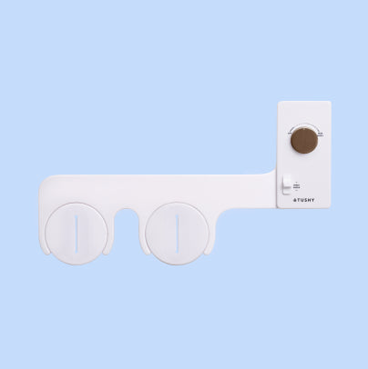 Sit, poop, spray, pat dry. Turn the dial on your TUSHY control panel to activate the bidet nozzle after you plop. Fresh, pressurized water will spray your b-hole clean. Let it flow for a few seconds before patting your booty dry with a few squares of bamboo TP!