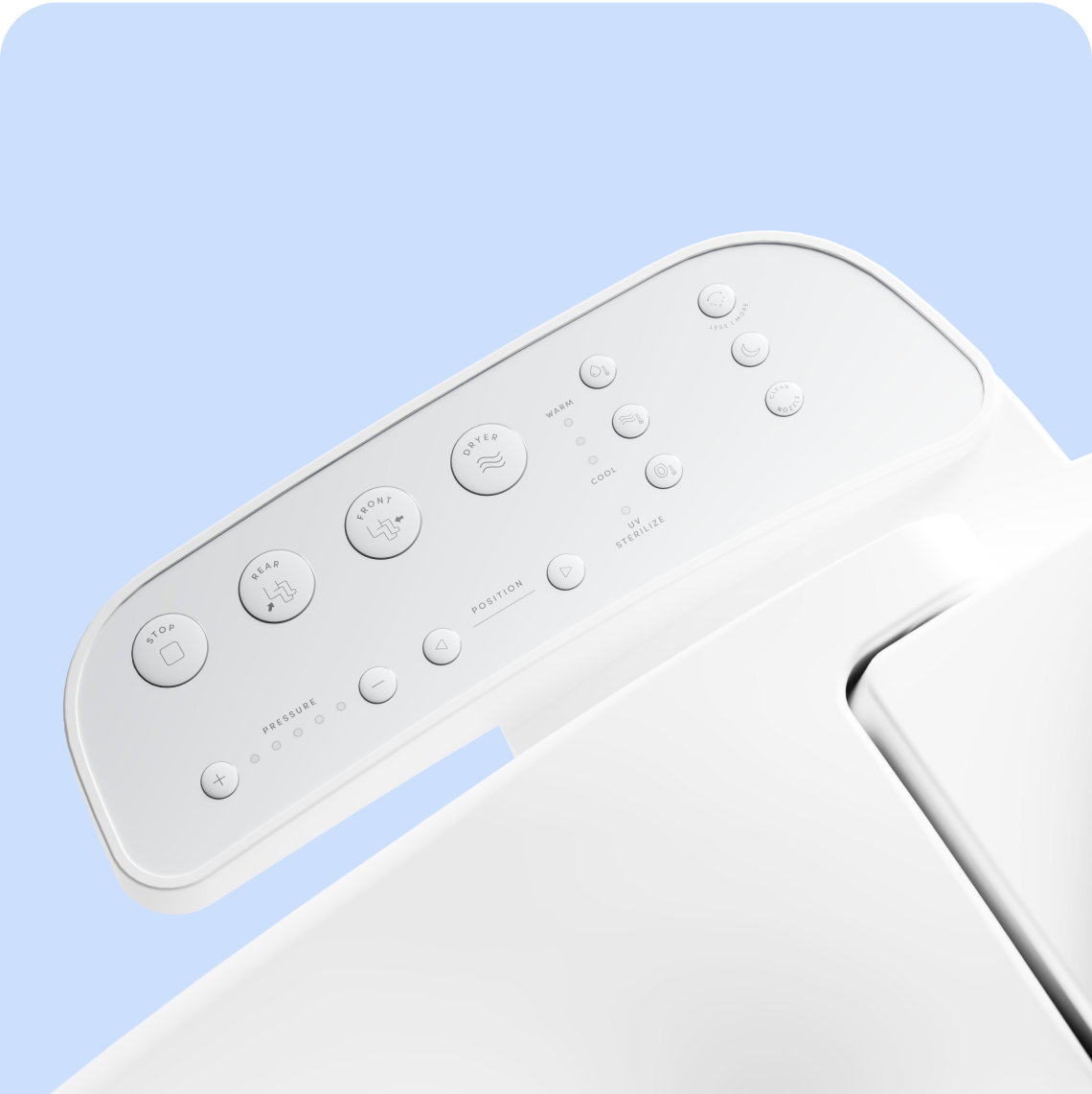 Simply sit, cleanse, and dry. After installation, adjust the water pressure and temperature with Cloud's performance console. Then choose between front or rear wash for a precise, spa-like clean. The heated seat keeps you warm from the moment you sit down, while the built-in air dryer eliminates the need for toilet paper. With its UV-sterilized nozzle, Cloud elevates the cleanliness of every trip to the toilet