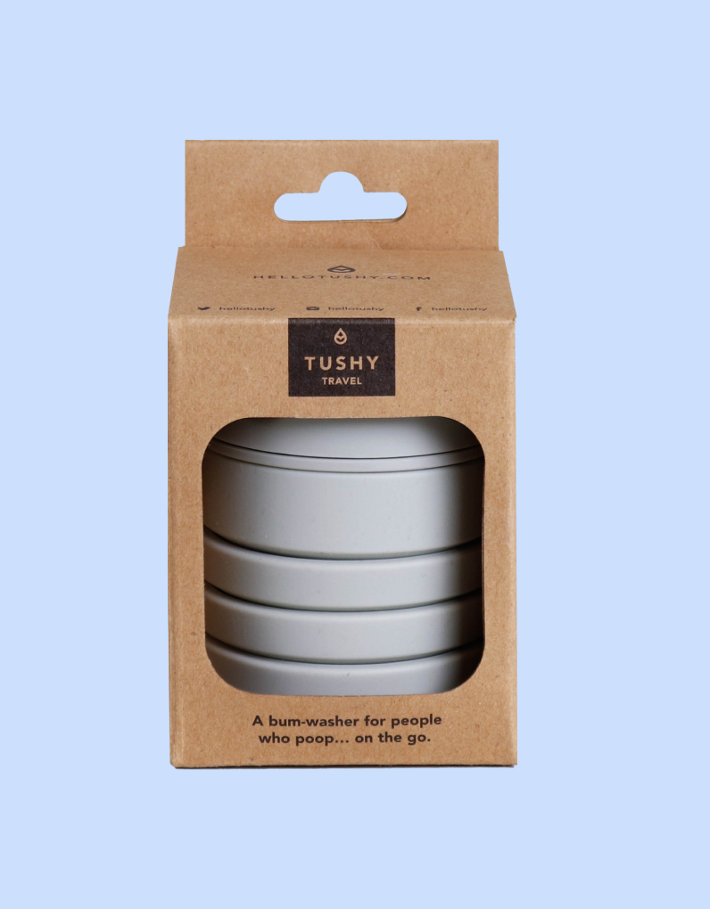 TUSHY Travel is a portable bidet, perfect for people who poop when they’re out and about… AKA you!