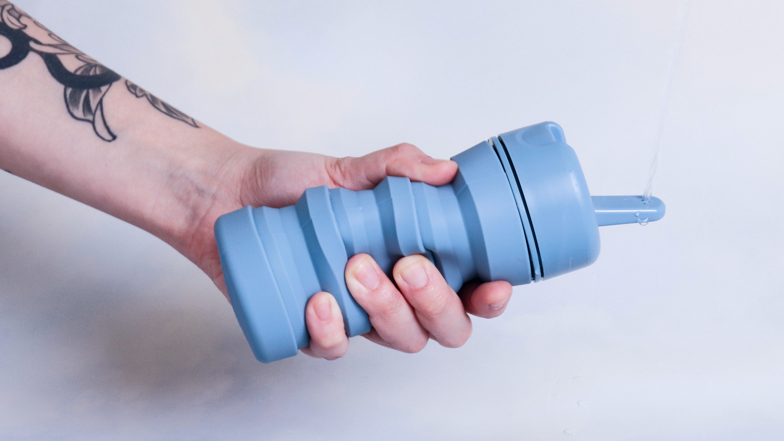 - Collapsible bottle with TURD-gonomic grip and squeeze