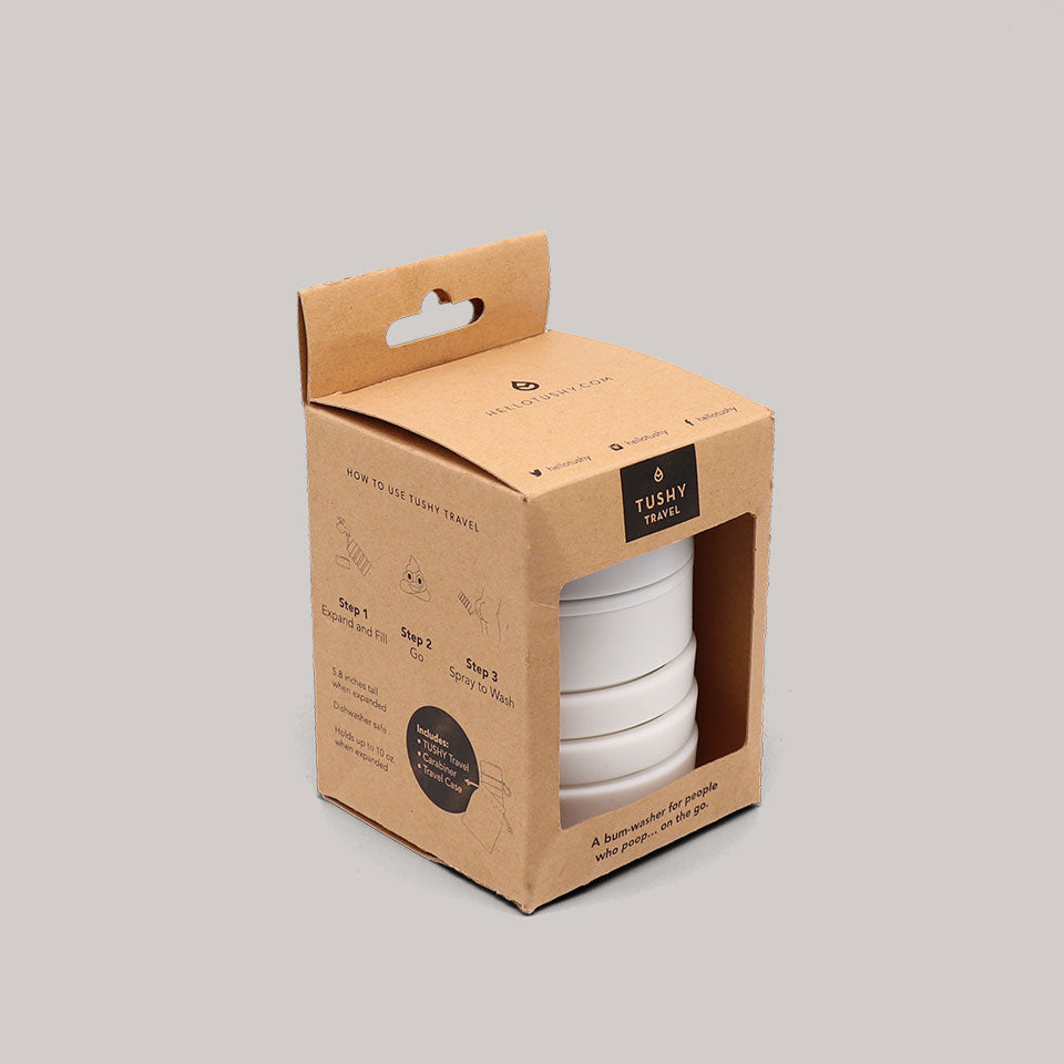 TUSHY Travel is perfect for people who poop when they’re out and about… which means you! TUSHY Travel is collapsible and expandable for discreet portability. Take it to work, school, or that over-priced festival you regret buying tickets to. It’s honestly like having your very own TUSHY bidet in the palm of your hand.