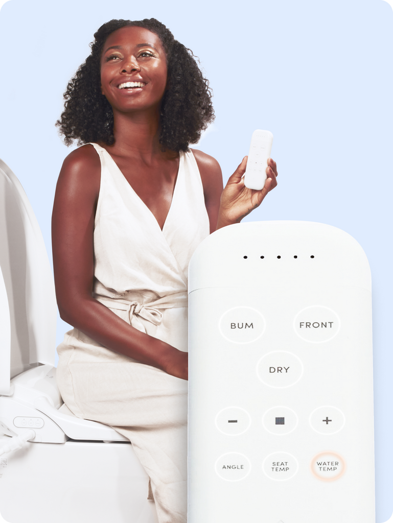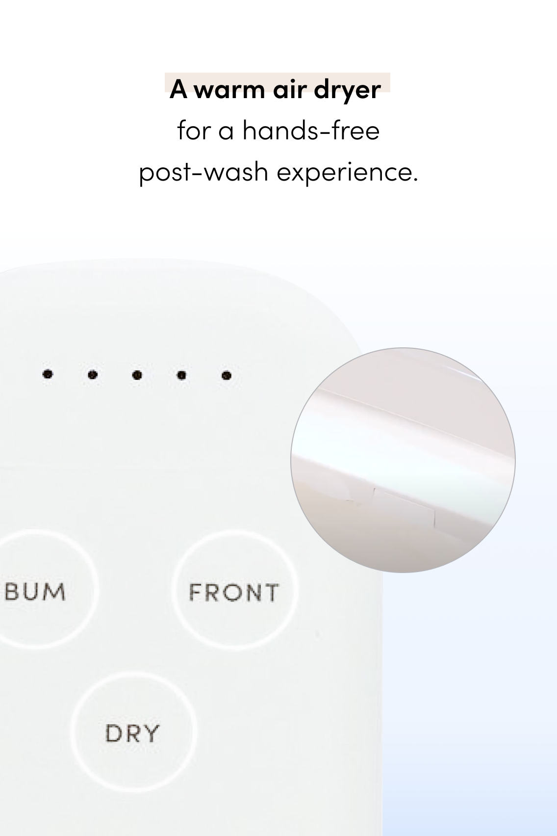 Sit, poop, spray, pat dry. Tap the remote to activate the bidet nozzle after you plop. Heated, fresh, pressurized water will spray your b-hole clean. Let it flow for a few seconds before tapping the remote to activate the heated dryer to give your booty a nice blow dry!